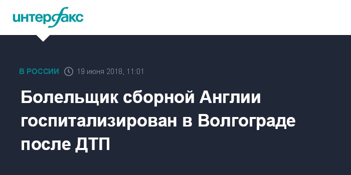 Москва. 19 июня. INTERFAX.RU - Гражданин Великобритании, который ехал на автомобиле в Волгоград на матч сборных Англии и Туниса, попал в понедельник в ДТП в Светлоярском районе Волгоградской области, сообщили агентству "Интерфакс" в региональном комитете здравоохранения.