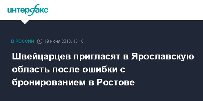 Как сообщалось, несколько болельщиков сборной Швейцарии забронировали гостиницу в Ростове Великом (Ярославская область), планируя посетить встречу Швейцария-Бразилия в Ростове-на-Дону.