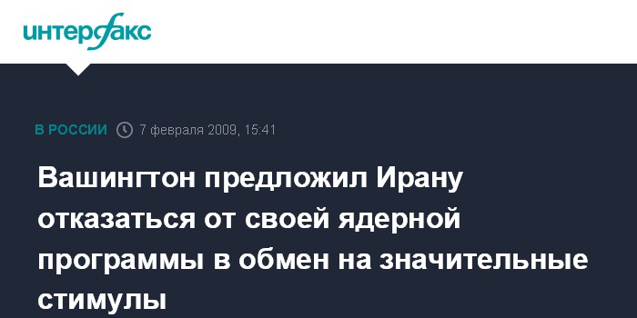 Москва. 7 февраля. INTERFAX.RU - Новый вице-президент США Джо Байден в ходе выступления на конференции по безопасности в Мюнхене пообещал Ирану значительные стимулы, в том случае если эта страна откажется от реализации "незаконной" ядерной программы, передает британская телерадиовещательная корпорация Би-Би-Си.