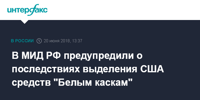 В МИД РФ предупредили о последствиях выделения США средств "Белым каскам"