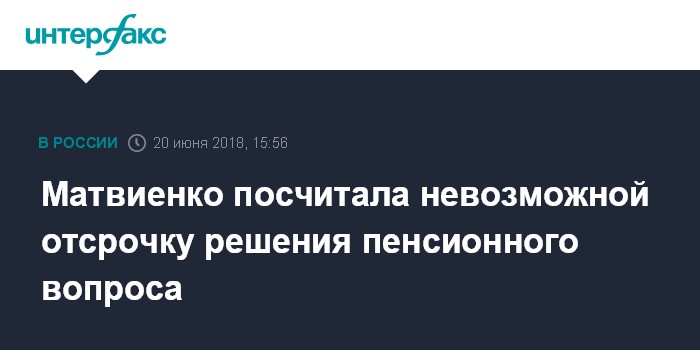 Матвиенко посчитала невозможной отсрочку решения пенсионного вопроса