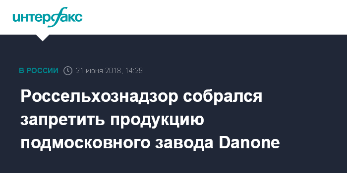 Москва. 21 июня. INTERFAX.RU - Россельхознадзор обнаружил нарушения в ООО "Данон Индустрия" ("дочка" Danone) в Чеховском районе Московской области и планирует запретить поставки его продукции в ЕАЭС.