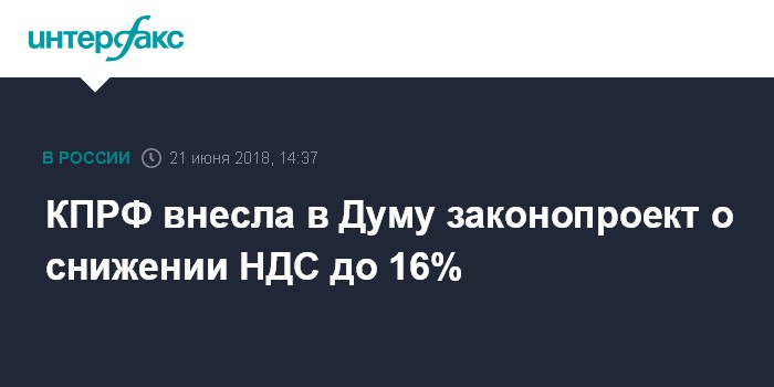КПРФ внесла в Думу законопроект о снижении НДС до 16%