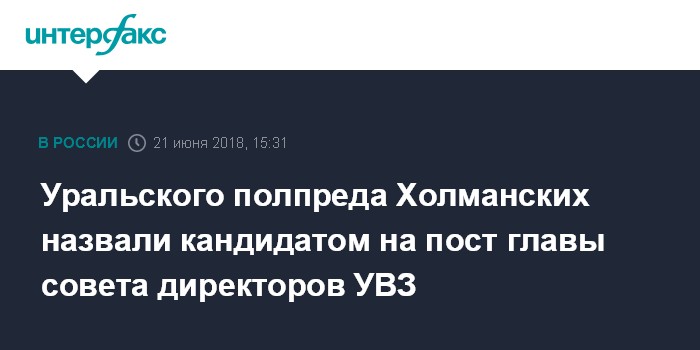В свою очередь источник "Интерфакса" в органах власти подтвердил эту информацию, отметив, что Холманских, скорее всего, будет не рядовым членом, а председателем совета директоров. При этом он предположил, что полпред в УрФО оставит свой пост, сосредоточившись на работе в совете директоров УВЗ.