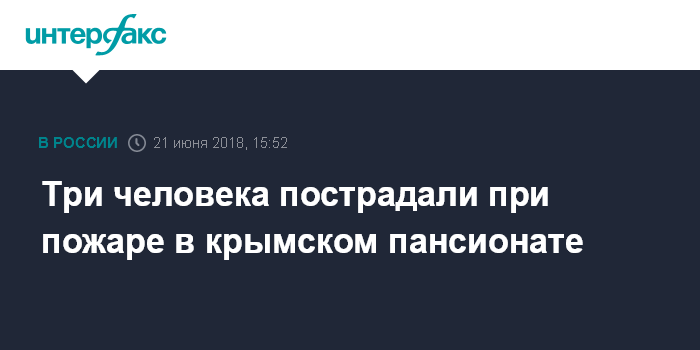 Москва. 21 июня. INTERFAX.RU - Три человека, по предварительным данным, пострадали во время пожара в пансионате "Арсенал" в курортном городе Евпатория на западе Крыма, сообщил "Интерфаксу" информированный источник.