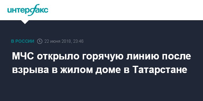 Москва. 22 июня. INTERFAX.RU - В Главном управлении МЧС России по Татарстану открыт телефон "горячей линии" (843)227-46-96 для приема звонков от родственников пострадавших в результате взрыва в жилом доме в Заинске, сообщает в пятницу пресс-служба ведомства.