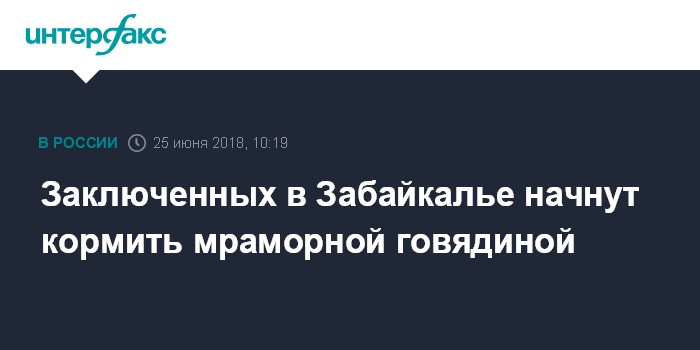 Москва. 25 июня. INTERFAX.RU - Блюда из мраморной говядины пополнят рацион питания осужденных в местах лишения свободы в Забайкальском крае, сообщает пресс-служба регионального УФСИН.