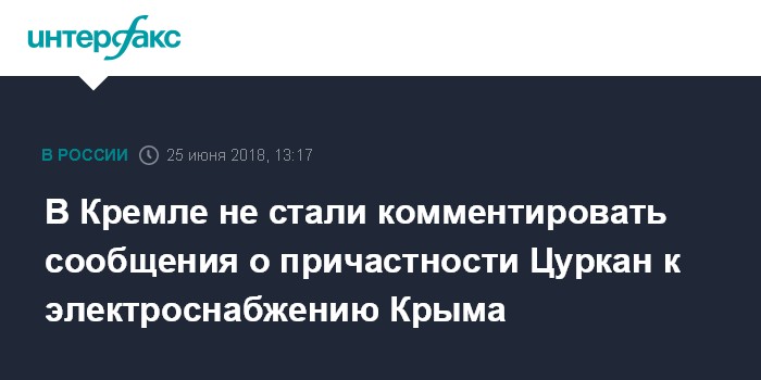 В Кремле не стали комментировать сообщения о причастности Цуркан к электроснабжению Крыма