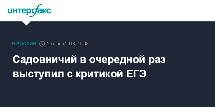 Москва. 25 июня. INTERFAX.RU - Ректор МГУ имени Ломоносова Виктор Садовничий в очередной раз критически отозвался о единых государственных экзаменах.