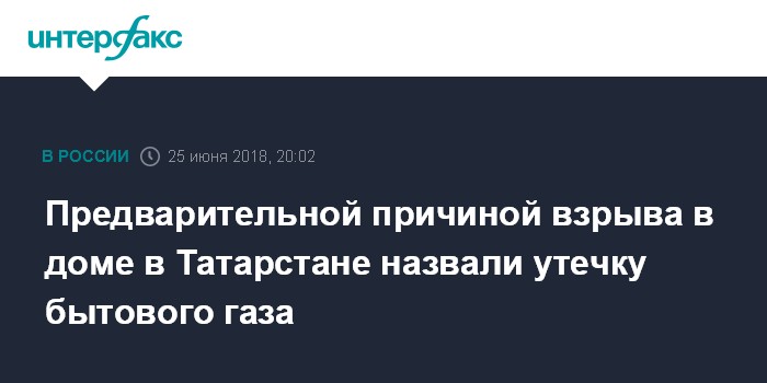 "По предварительной версии, хлопок произошел в результате утечки бытового газа. С целью установления причины назначен ряд экспертиз: судебно-медицинская, пожаро-техническая, трасологическая, газо-техническая и взрыво-технологическая", - сообщает пресс-служба следственного управления СКР по Татарстану в понедельник.