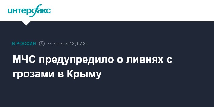Москва. 27 июня. INTERFAX.RU - Резкое ухудшение погоды прогнозируется в Крыму в среду, объявлено экстренное предупреждение, сообщила пресс-служба регионального управления МЧС России.