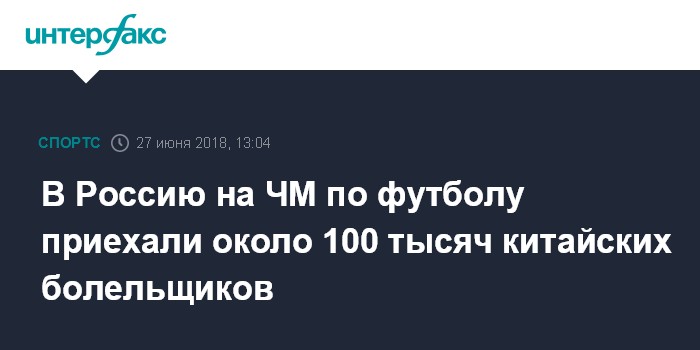 В Россию на ЧМ по футболу приехали около 100 тысяч китайских болельщиков
