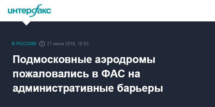 Москва. 27 июня. INTERFAX.RU - Операторы подмосковных аэродромов экспериментальной авиации недовольны административными барьерами при размещении объектов капитального строительства, свидетельствуют материалы Федеральной антимонопольной службы (ФАС) России.