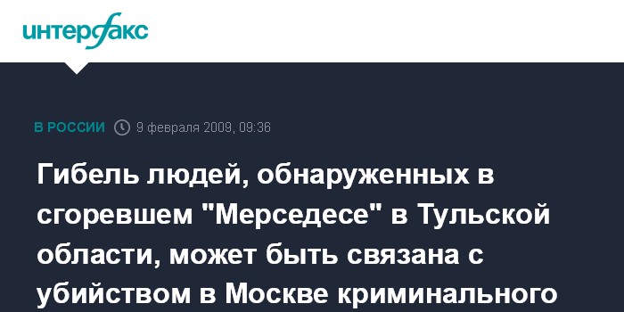 Гибель людей, обнаруженных в сгоревшем "Мерседесе" в Тульской области, может быть связана с убийством в Москве криминального авторитета