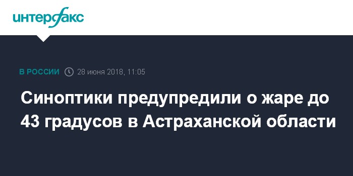 "В ближайшие несколько дней, вплоть до 2 июля, в Астраханской области прогнозируются высокие температуры, до +43. Это выше нормы, сформированной на основе многолетних наблюдений", - сказала Маринкевич.