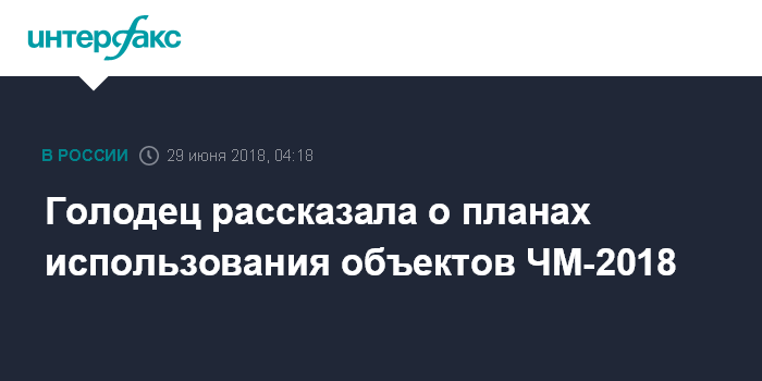 Голодец рассказала о планах использования объектов ЧМ-2018