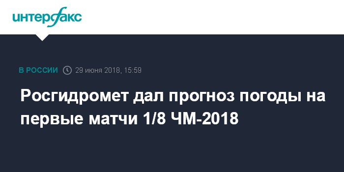 Москва. 29 июня. INTERFAX.RU - Глава Росгидромета Максим Яковенко озвучил прогноз погоды на ближайшие матчи 1/8 финала Чемпионата мира по футболу: сложнее всего придется футболистам Бельгии и Японии, легче всего - Швеции и Швейцарии.
