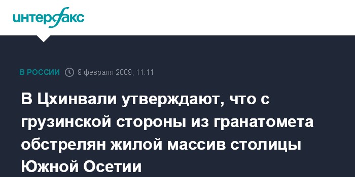 Москва. 9 февраля. INTERFAX.RU - Власти Южной Осетии обвиняют грузинскую сторону в обстреле жилого массива в Цхинвали.