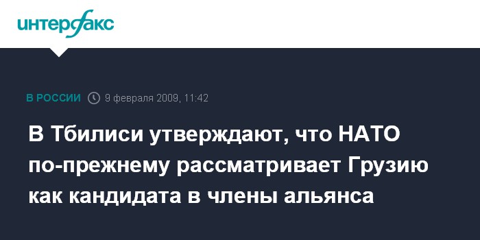 Москва. 9 февраля. INTERFAX.RU - Глава МИД Грузии Григол Вашадзе заявил, что страна рассматривается как кандидат в члены НАТО.