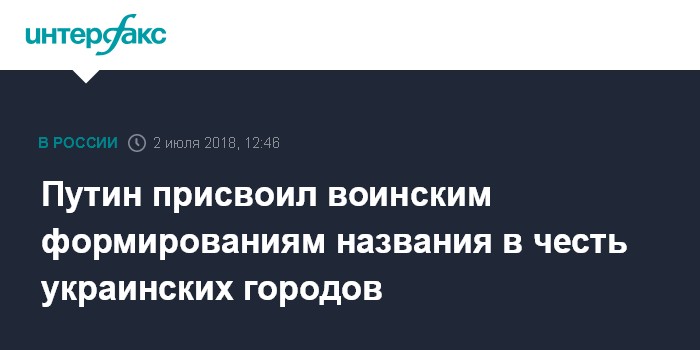 Путин присвоил воинским формированиям названия в честь украинских городов