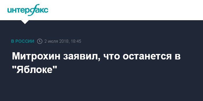 Как ранее сообщалось, федеральное бюро "Яблока" приостановило полномочия главы московского отделения партии Митрохина. В решении, принятом бюро в понедельник, отмечалось, что публичные заявления Митрохина по вопросу выдвижения кандидата на выборах мэра "противоречат интересам партии и наносят политический ущерб".