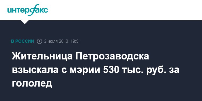 Москва. 2 июля. INTERFAX.RU - Пенсионерка из Петрозаводска, травмировавшая ногу из-за гололеда, взыскала с мэрии города компенсацию более 530 тыс. рублей, сообщает пресс-служба городского суда.
