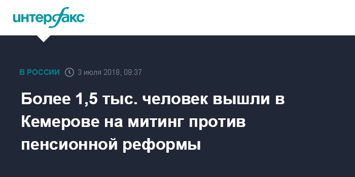 Москва. 3 июля. INTERFAX.RU - Федерация профсоюзных организаций Кемеровской области во вторник провела согласованный митинг против пенсионной реформы в гайд-парке столицы региона, сообщили "Интерфаксу" в пресс-службе федерации.