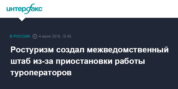 По данным ведомства, штаб во главе с руководителем Ростуризма Олегом Сафоновым будет осуществлять мониторинг сложившейся ситуации и вырабатывать меры по защите прав и законных интересов туристов при участии представителей МИД России, Роспотребнадзора, Росавиации, ассоциации "Турпомощь", а также общественных объединений туроператоров.