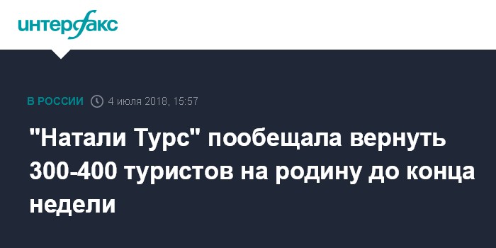 "Натали Турс" пообещала вернуть 300-400 туристов на родину до конца недели