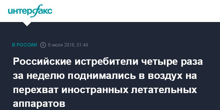 Согласно еженедельной инфографике газеты "Красная звезда", дежурные силы противовоздушной обороны (ПВО) за неделю выполнили четыре вылета на перехват и сопровождение иностранных самолетов-разведчиков у границ России.
