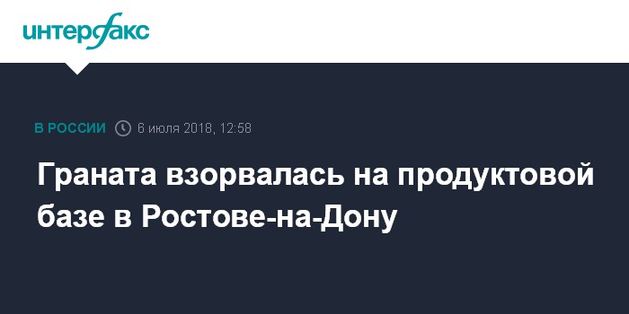 Москва. 6 июля. INTERFAX.RU - Взрыв ручной гранаты произошел на продуктовой базе в Ростове-на-Дону. Об этом сообщил "Интерфаксу" информированный источник.