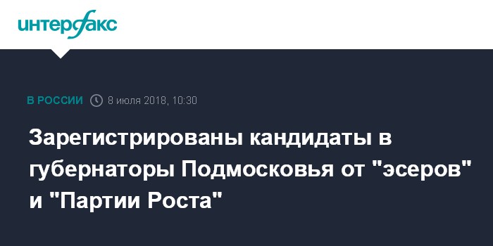 Зарегистрированы кандидаты в губернаторы Подмосковья от "эсеров" и "Партии Роста"