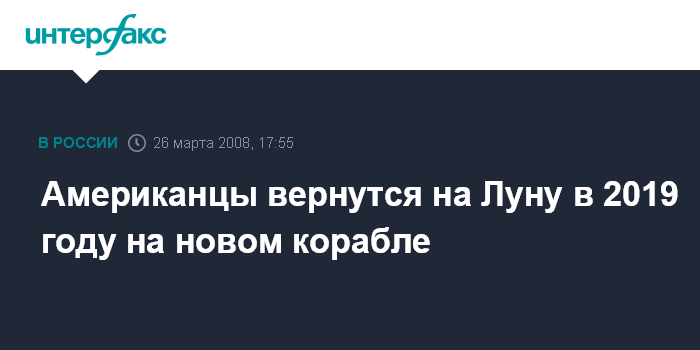 Москва. 26 марта. INTERFAX.RU - Новый американский космический корабль Orion отправится в космос в 2013 г., а в 2019 г. высадит американских астронавтов на Луне.