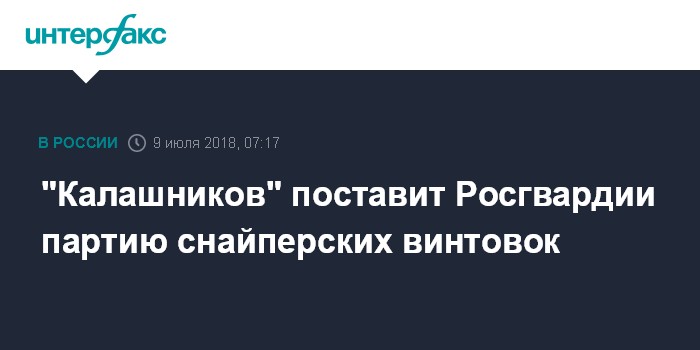 Москва. 9 июля. INTERFAX.RU - Росгвардия заключила с АО "Концерн "Калашников" (входит в ГК "Ростех") контракт на поставку 26 снайперских винтовок СВ-98, следует из документации, размещенной в системе "СПАРК-Маркетинг".