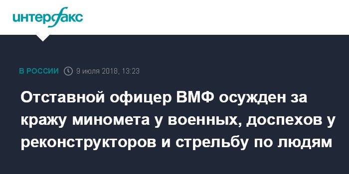 Отставной офицер ВМФ осужден за кражу миномета у военных, доспехов у реконструкторов и стрельбу по людям