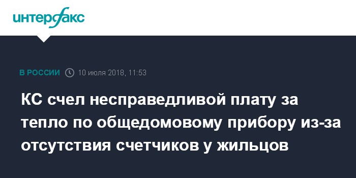 Москва. 10 июля. INTERFAX.RU - Конституционный суд РФ провозгласил постановление по делу о порядке начисления платы за отопление в многоквартирных домах, в отдельных квартирах которых не работают приборы учета.