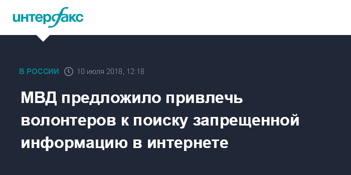 Москва. 10 июля. INTERFAX.RU - МВД РФ предлагает волонтерам мониторить интернет для выявления запрещённой информации и подростковой преступности.