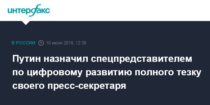 Путин назначил спецпредставителем по цифровому развитию полного тезку своего пресс-секретаря