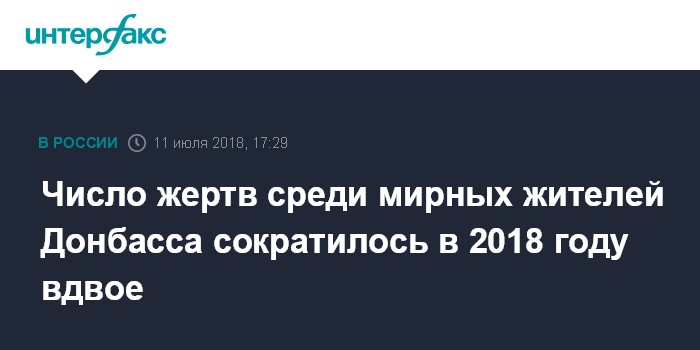 Москва. 11 июля. INTERFAX.RU - ОБСЕ отмечает двукратное сокращение числа жертв среди мирного населения в Донбассе в 2018 году.