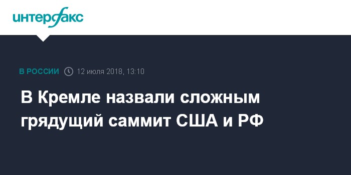 Москва. 12 июля. INTERFAX.RU - В Москве ожидают сложных переговоров президентов РФ и США Владимира Путина и Дональда Трампа в Хельсинки, учитывая большое количество разногласий между двумя странами, поэтому не прогнозируют, что последнее заявление американского лидера по проекту "Северный поток-2" привнесет дополнительные трудности.
