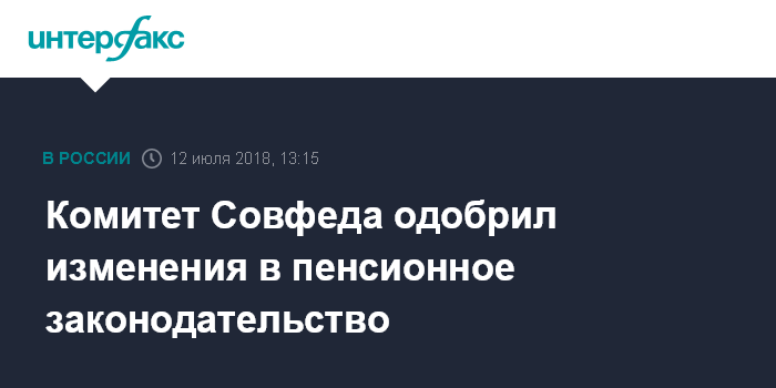 Москва. 12 июля. INTERFAX.RU - Комитет Совета Федерации по социальной политике на заседании в четверг в целом поддержал правительственный законопроект об изменениях в пенсионное законодательство.