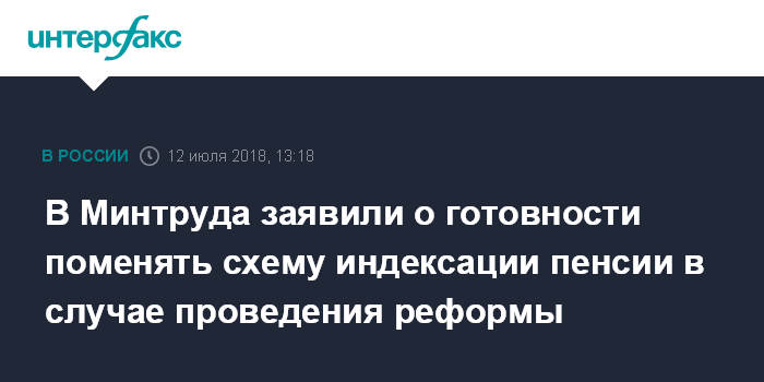 Москва. 12 июля. INTERFAX.RU - Замглавы Минтруда России Андрей Пудов заявил, что в его ведомстве оценивают возможность изменить существующий порядок индексации пенсий - в феврале и в апреле - чтобы обеспечить рост средней пенсии в России на обещанные правительством 7% в год в случае изменения пенсионного законодательства.