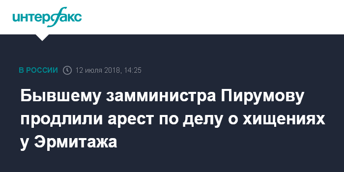 Бывшему замминистра Пирумову продлили арест по делу о хищениях у Эрмитажа