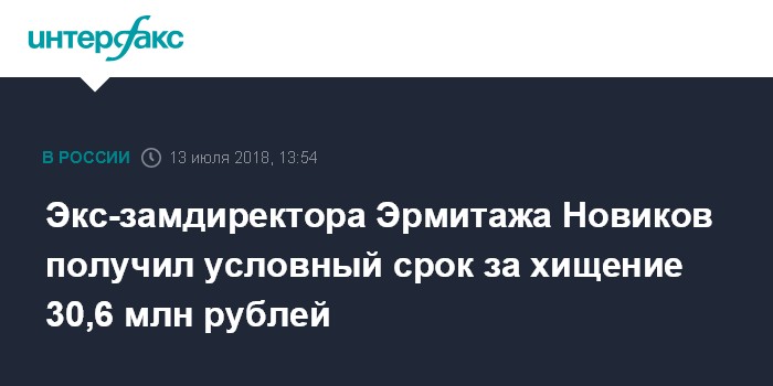 Экс-замдиректора Эрмитажа Новиков получил условный срок за хищение 30,6 млн рублей