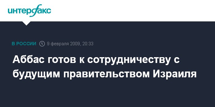 Варшава. 9 февраля. NITERFAX.RU - Председатель Палестинской национальной администрации Махмуд Аббас заявил в понедельник в Варшаве, что он готов к сотрудничеству с будущим правительством Израиля, которое будет сформировано после выборов, намеченных на вторник.