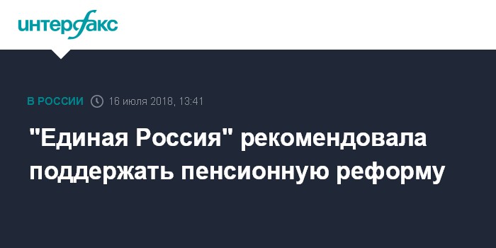 "Единая Россия" рекомендовала поддержать пенсионную реформу
