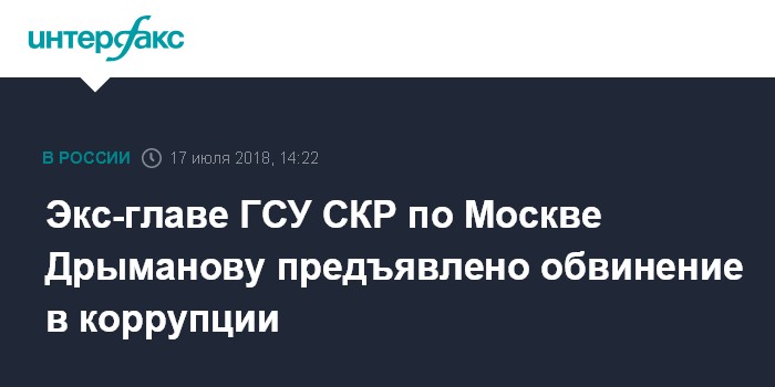 Информация о Дрыманове была удалена из вкладки "Руководство" с сайта московского главного следственного управления СК. Первой строчкой на сайте размещены данные об и.о. замруководителя ГСУ Андрее Стрижове. Ранее несколько информированных источников сообщили "Интерфаксу", что Дрыманов больше не является руководителем главка, его обязанности исполняет Стрижов.