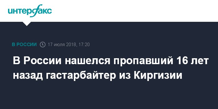 "Выехавший на заработки в РФ в 2002 году уроженец города Ош Хусан Шарипов на протяжении 16 лет числился без вести пропавшим. (Он) найден на территории Самарской области", - сообщили во вторник "Интерфаксу" в пресс-службе МВД Киргизии.