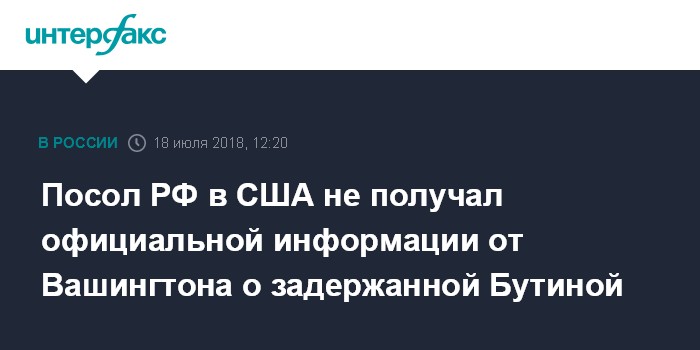 Москва. 18 июля. INTERFAX.RU - Официальной информации от Вашингтона относительно задержанной россиянки Марии Бутиной нет, заявил российский посол в США Анатолий Антонов.
