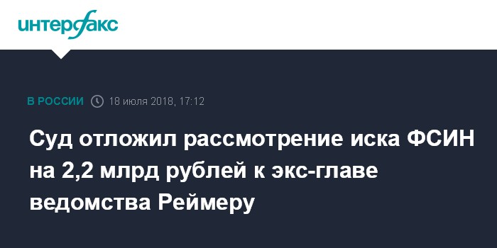 Суд отложил рассмотрение иска ФСИН на 2,2 млрд рублей к экс-главе ведомства Реймеру